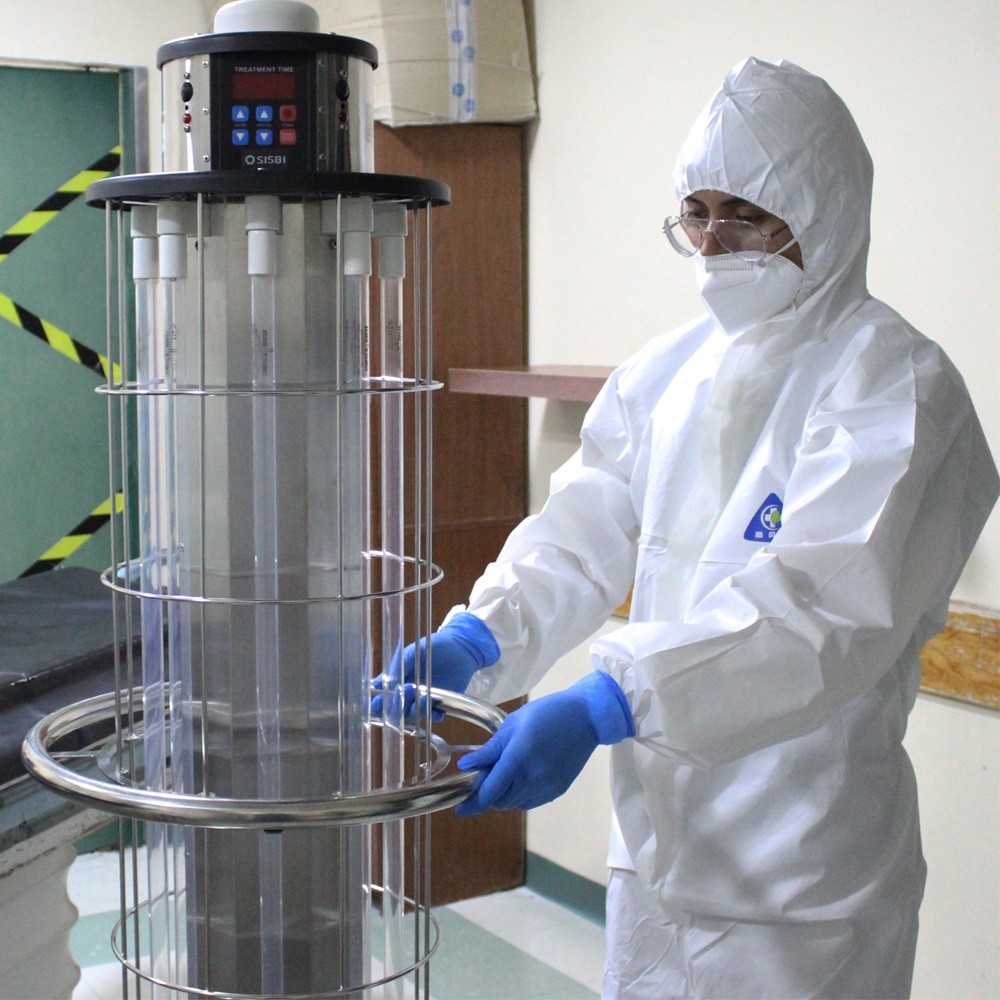 . Irradia l aire y las superficies expuestas con rayos ultravioleta