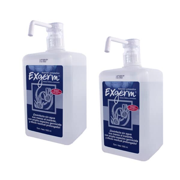 PACK DE 2 BOTELLAS DE 1 lt c/u de EXGERM, CON DOSIFICADOR. CON AGRADABLE AROMA A MENTA.